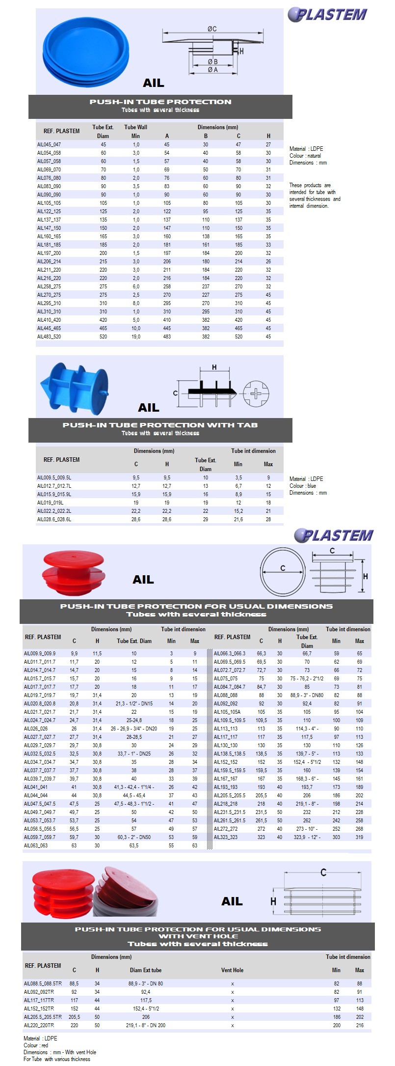 | AIL020.8_020.8 | Caps with layer Ext Dim 20,8 Ht 31,4 mm for tube OD 21,3-1/2-DN 15 | Prix/pce - Price/pce | 0.0543 | Details |