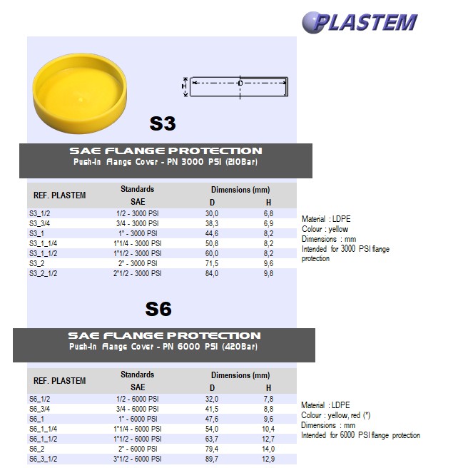 bouchon-plastique.com | Frame S3 and S6 are intended for 3000 PSI (210Bar) and 6000 PSI (420Bar) SAE flange protection.