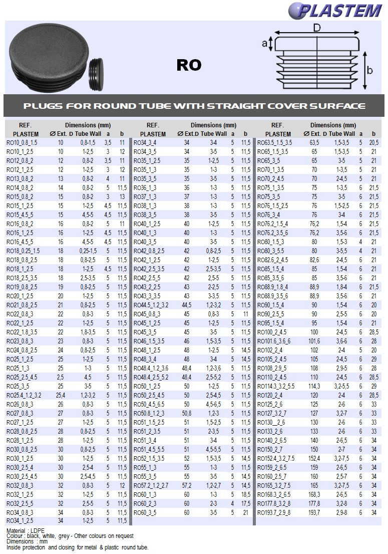 Round plastic inserts intended for inside protection and closing for metal & plastic round tube.