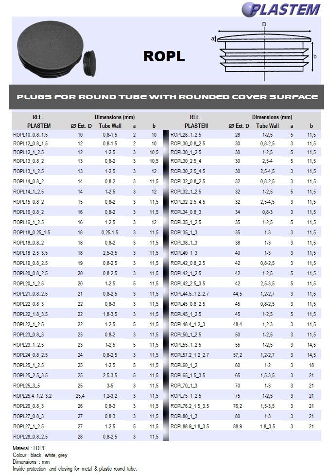 ROPL is round plastic inserts intended for inside protection and closing for metal & plastic round tube.