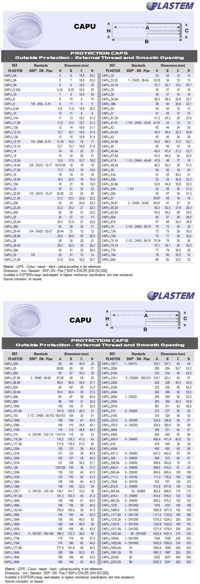bouchon-plastique.com | Frame CAPU are intended for tube, external thread and outside protection