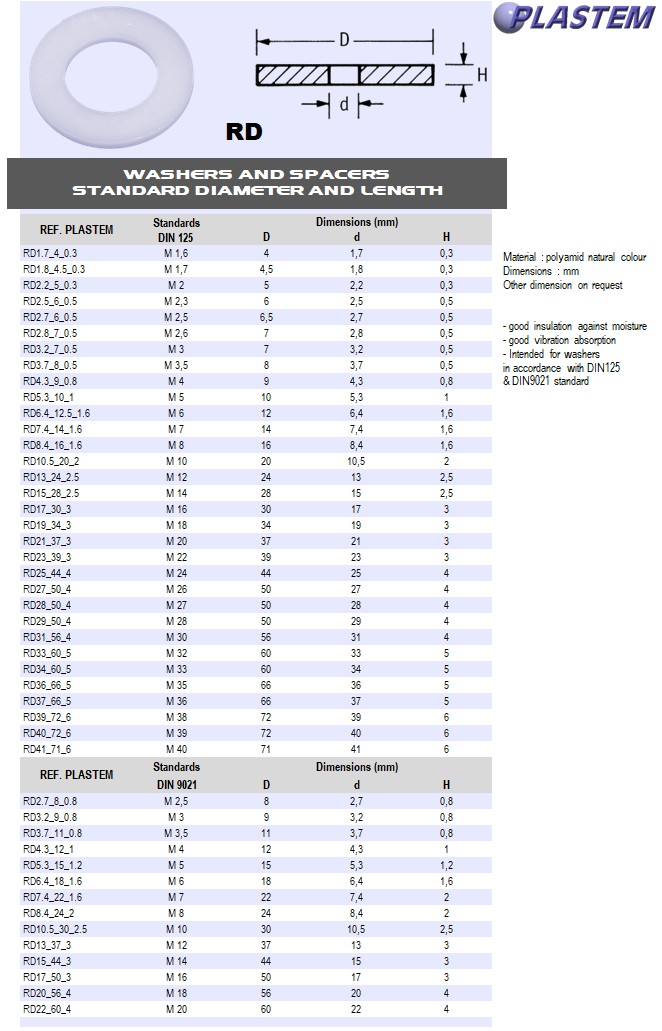 - Intended for washers and spacers in accordance with DIN125 & DIN9021 standard
