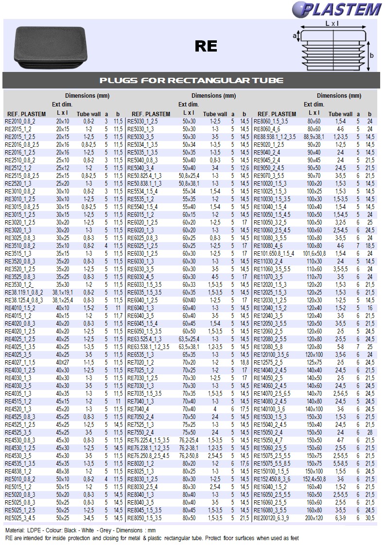 bouchon-plastique.com | Frame RE are intended for inside protection and closing for metal & plastic inserts rectangular tube.