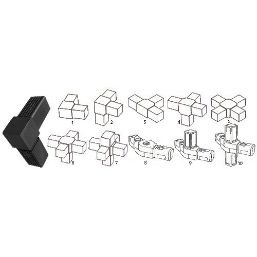 Square tube connector 25x25 mm Wall 1,5 mm - Typ 1 - PA Black