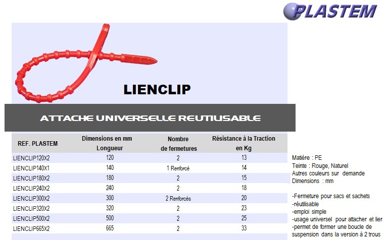 Ce lien et collier de serrage plastique clips détachable de couleur rouge est en polyéthylène naturel. Il est idéal lorsqu'il s'agit de fermer un sac ou un sachet réutilisable ne nécessitant pas d’inviolabilité. Son utilisation est très simple, et sa version à deux trous permet également de former une boucle de suspension. Le collier de serrage est universel. Il a été conçu pour lier ou attacher toutes sortes de sachets. Il est aussi doté d’un système à cran qui lui permet de modifier sa largeur afin de pouvoir s’adapter à différents formats. Au cas ou vous n’aimeriez pas la couleur rouge, sachez que ce lien et collier de serrage plastique clips détachable existe aussi en d’autre coloris. Idéal pour les opération de clipsage ou de ou de déclipsage, ce collier vous assurera une efficacité et une protection de qualité qui sauront répondre à vos attentes. Avec ce dernier, vous êtes assurés de pouvoir réutiliser le contenu de votre sachet dans les meilleures conditions.