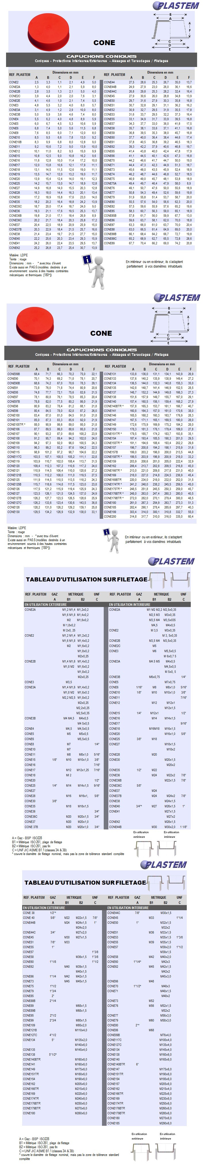 Dimensions : mm - CONE_TR: Avec trou d'évent