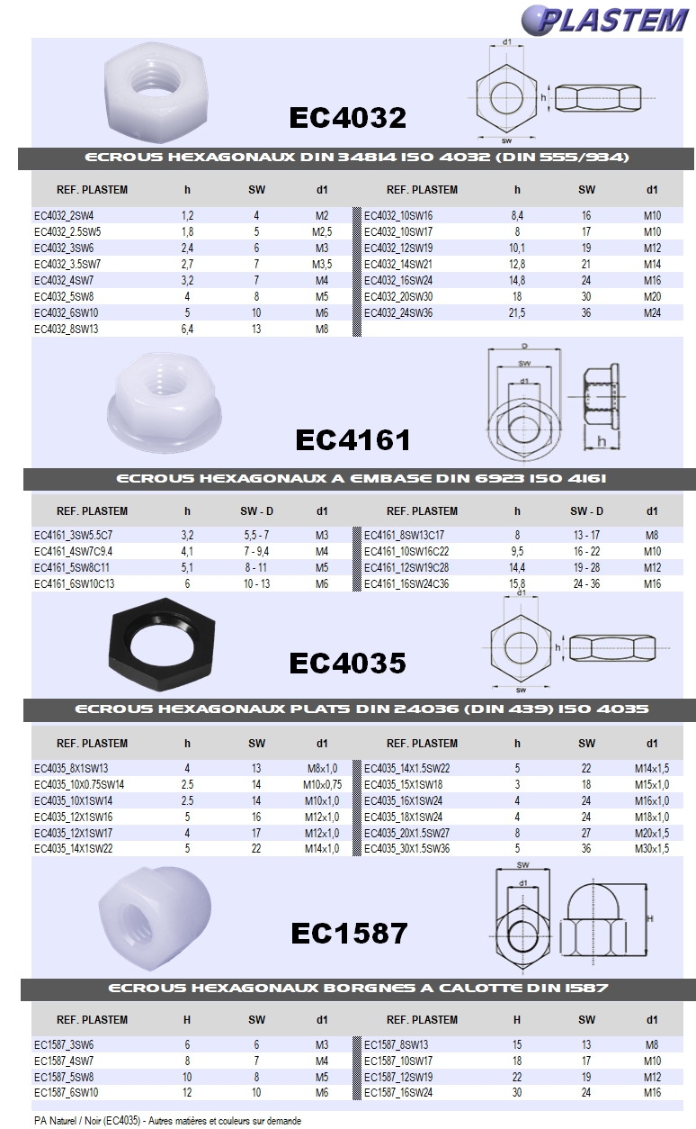 Les écrous plastiques sont réalisés sur demande