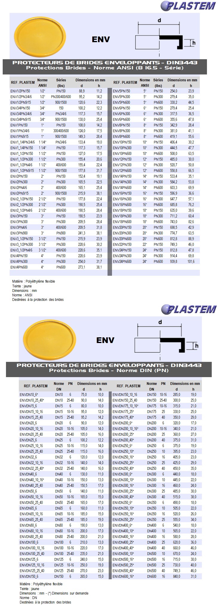 bouchon-plastique.com | Tableau bouchon protection bride enveloppant ENV selon la norme DIN