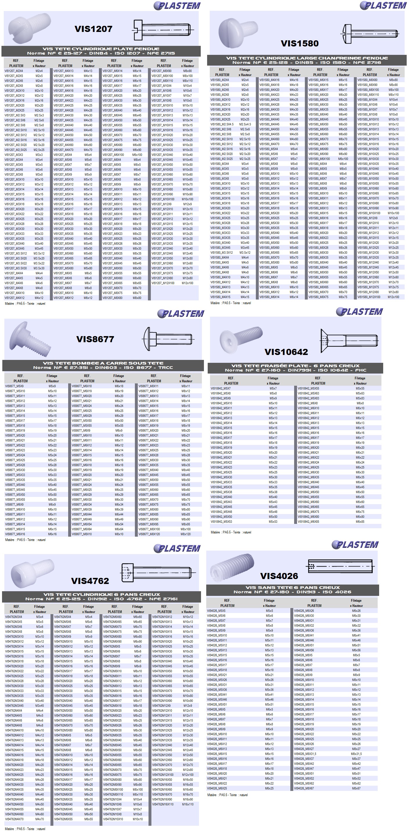 Les vis plastiques sont réalisées sur demande