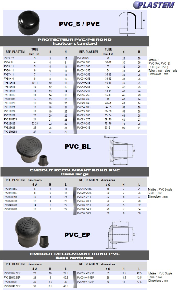 Embout recouvrant rond PVC et PE – Hauteur standard
