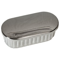 Embout ovale chromé pour la protection et l'obturation par l'intérieur de tubes ovales métalliques et plastiques. Les nervures verticales d'accrochage du bouchon embouts chromes ovales permettent un excellent serrage et s'adaptent aux variations de tolérances de fabrication des tubes.